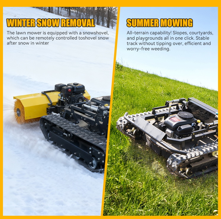 Remote-Controlled Lawn Mower and Snow Sweeper Dual Engines, 65° Steep Slope Climbing Capability, Supports Remote Start and Automatic Charging, Suitable for All Terrains